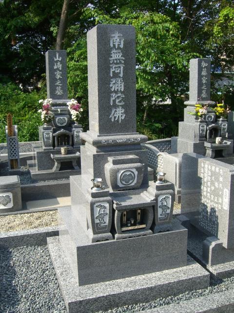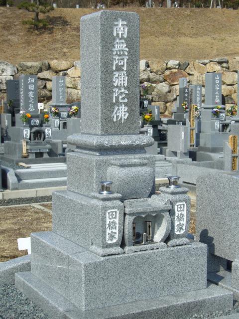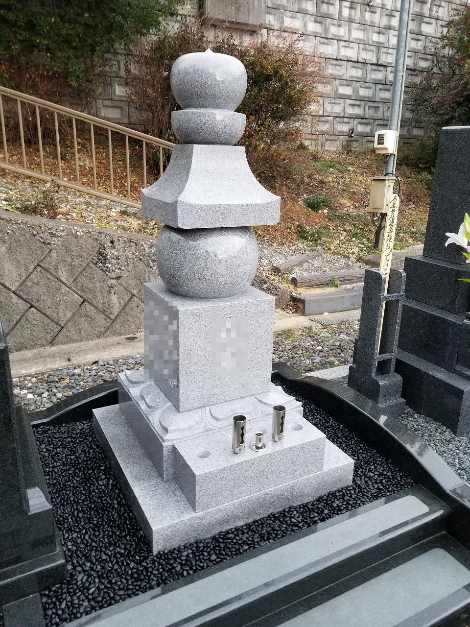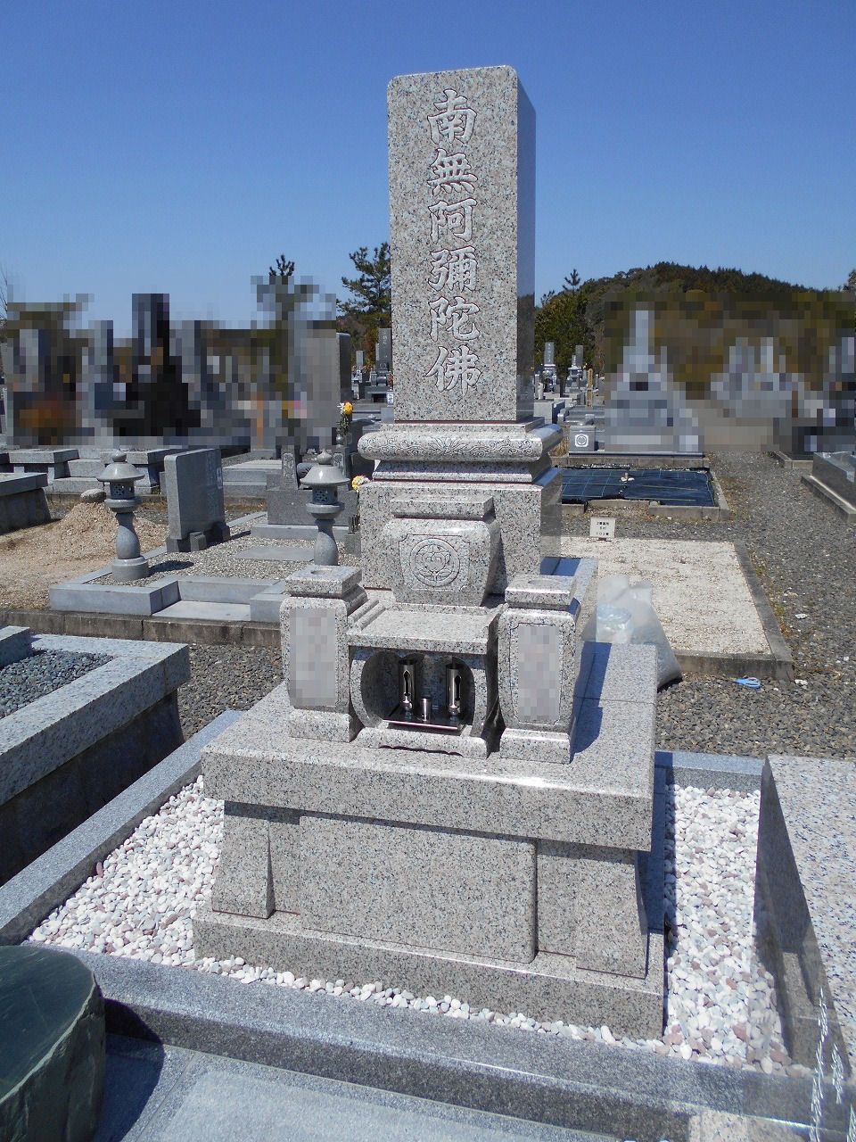日本で古くから建てられている角柱型のお墓です。台石の上に竿石という搭状の石が建てられていて、角柱の形は仏舎利塔、五輪塔を略したものといわれています。