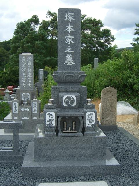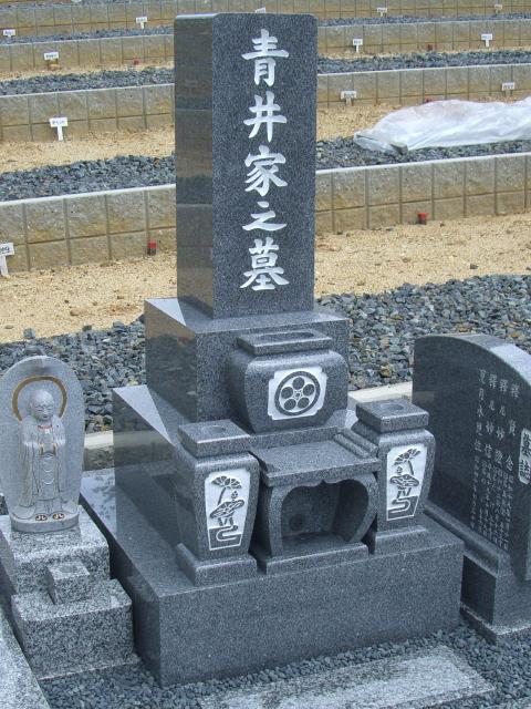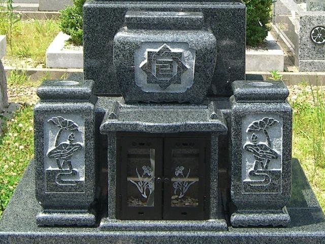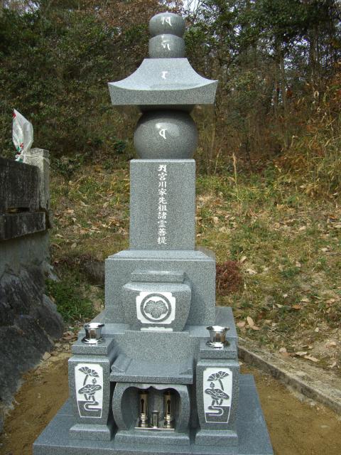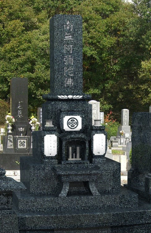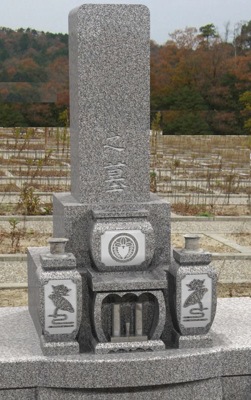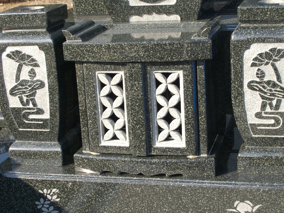屋根型香炉を供物型に変え経机をなくすことや、スリン・芝台をなくしもう少しシンプルにすることも可能です。比較的大きな区画向けです。